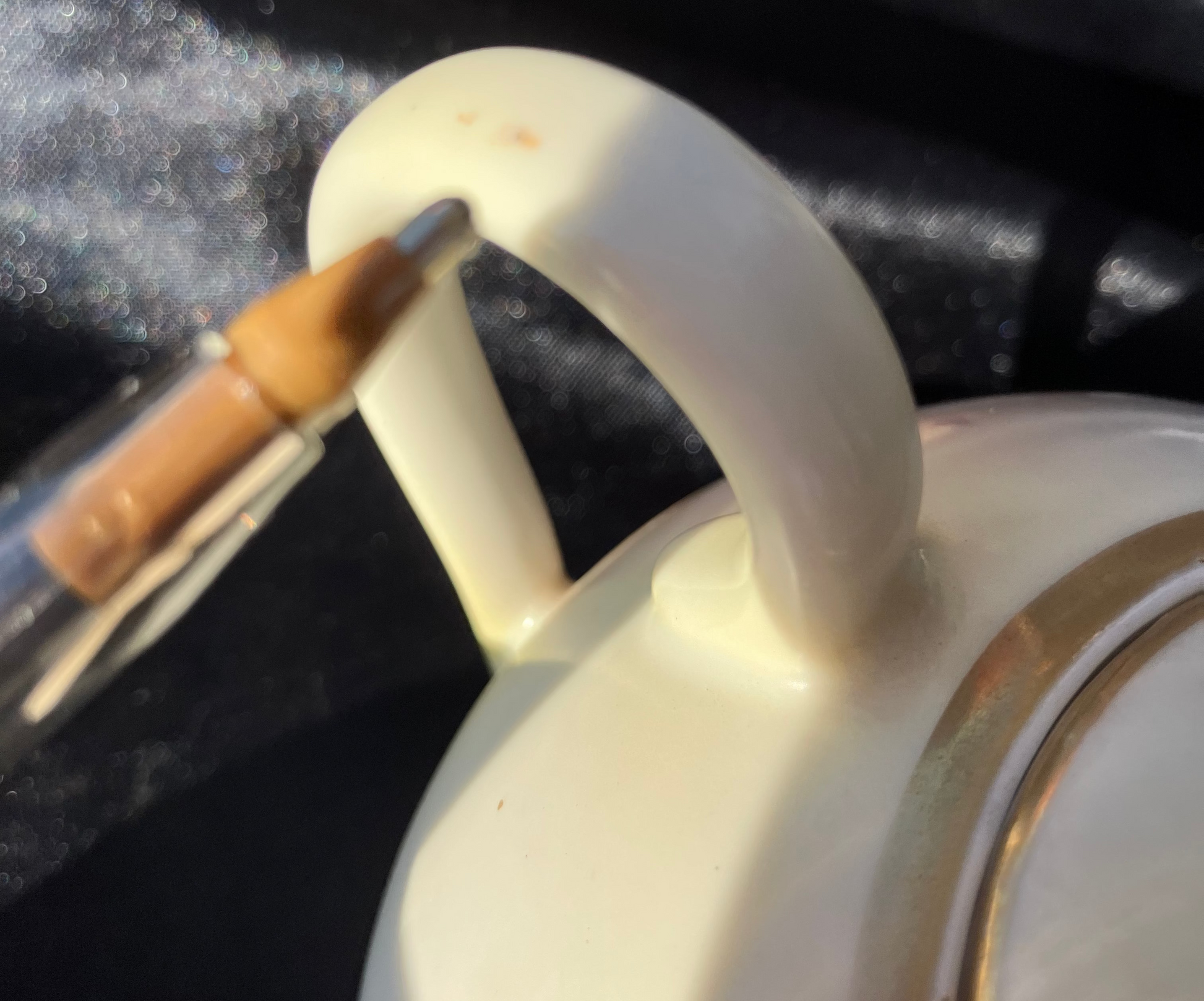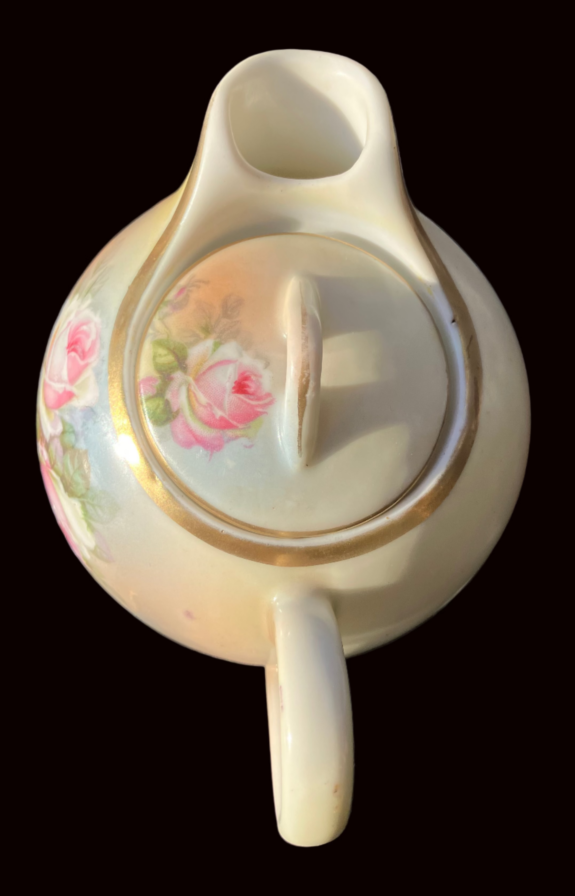 This lovely covered creamer makes a wonderful addition to a Bavarian porcelain collection, a shabby chic or cottagecore display, or a romantic tea set arrangement. Its soft floral palette and hand-applied details give it a timeless, delicate beauty.