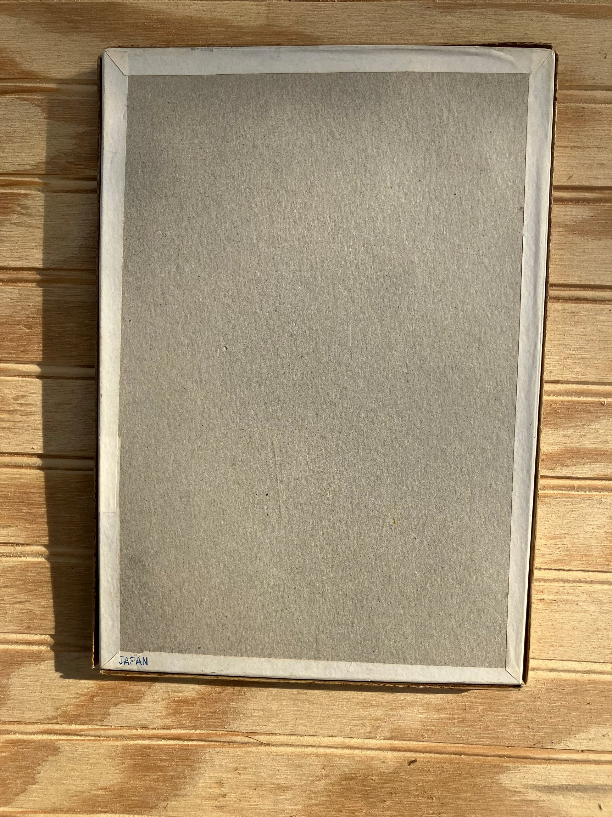 Made in Japan, this set comes in its original box, with 7 of the 8 forks still in their original tissue paper wrapping — the 8th was unwrapped for photos. The box shows light age-related wear on corners and edges, consistent with vintage storage.
