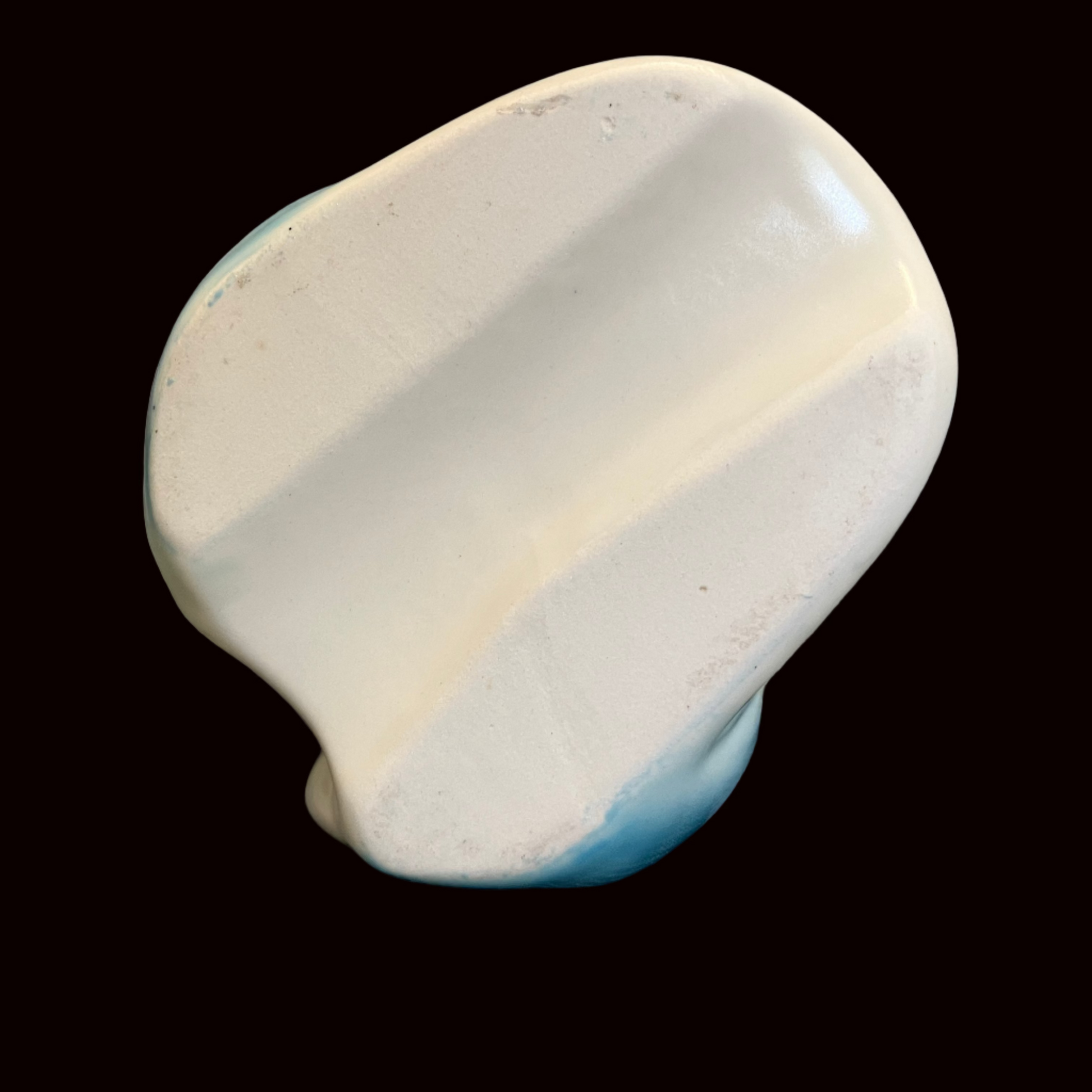 Approximately 5 inches tall, this planter or figurine is in very good vintage condition, showing only minimal wear consistent with age. There is no maker’s mark, but the quality craftsmanship and style reflect the elegant simplicity of mid-century religious decor.