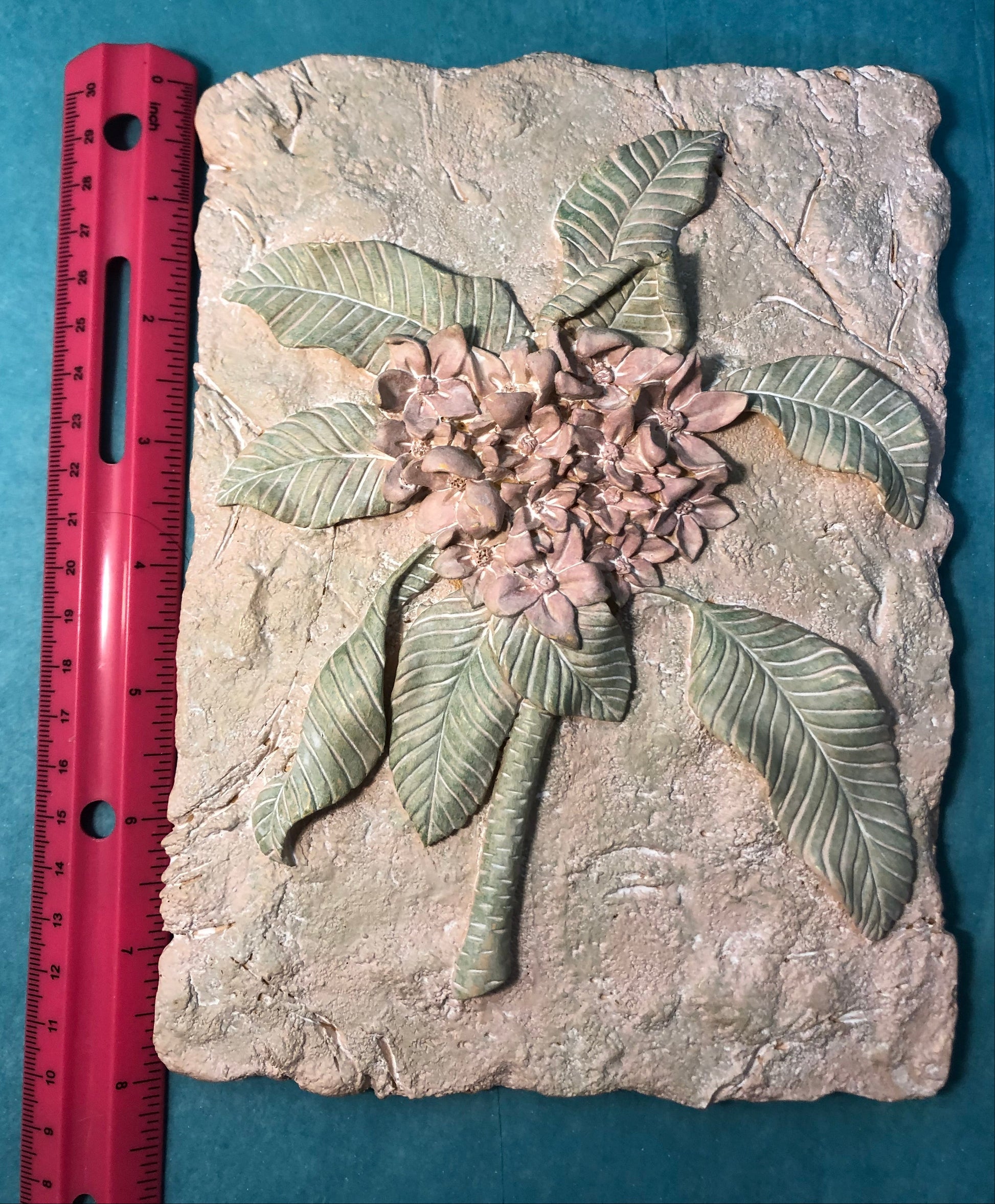 Vintage Cast Stone Floral Wall Plaque | Earth Tone Botanical Decor
