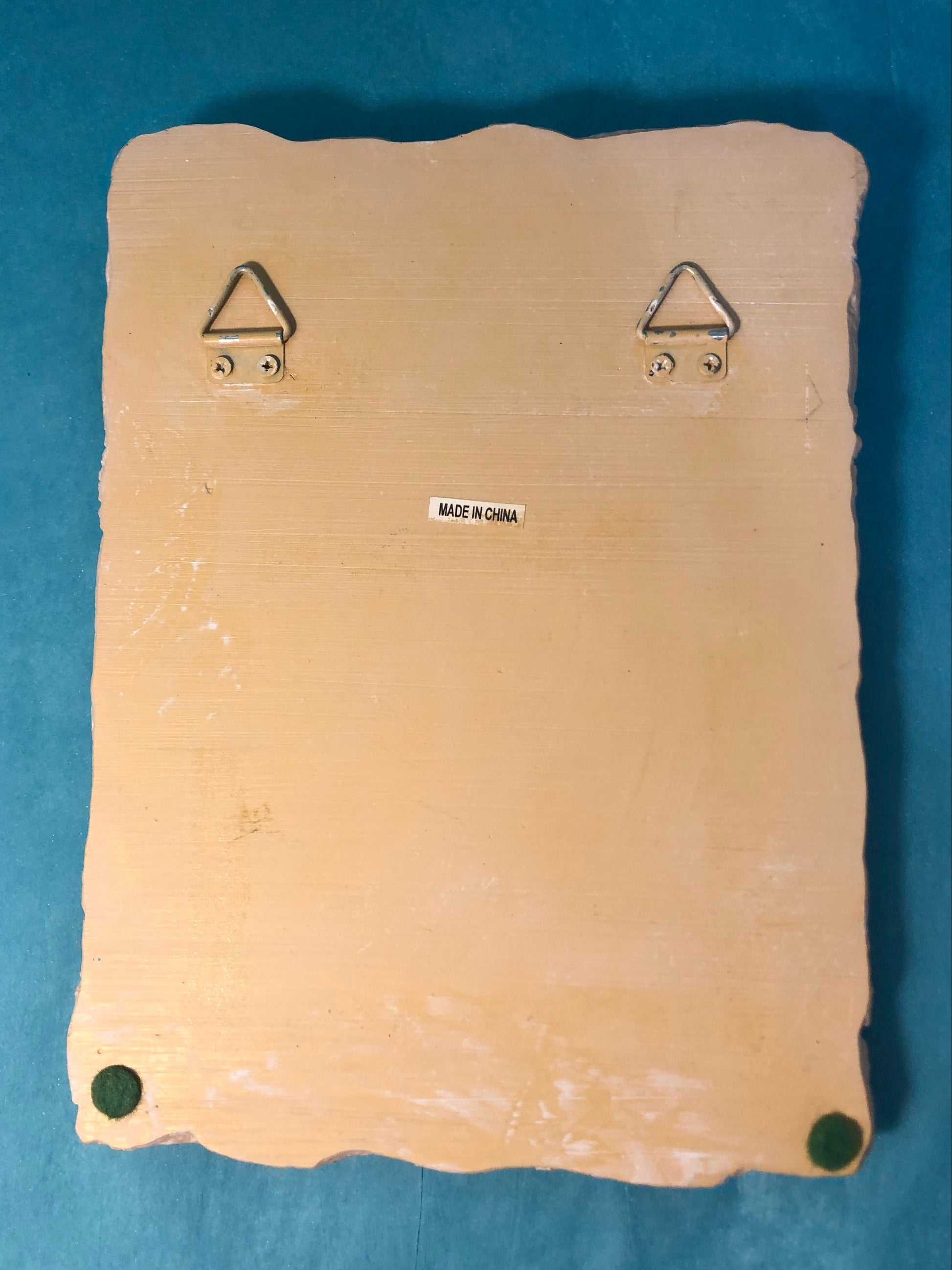Made of cast stone, this plaque has a solid, substantial weight, giving it a quality feel and excellent durability. The back includes sturdy hanging loops, making it easy to display securely on the wall. Measuring approximately 8 x 6 inches, it’s perfectly sized to add interest to a gallery wall, entryway, sunroom, or garden nook.