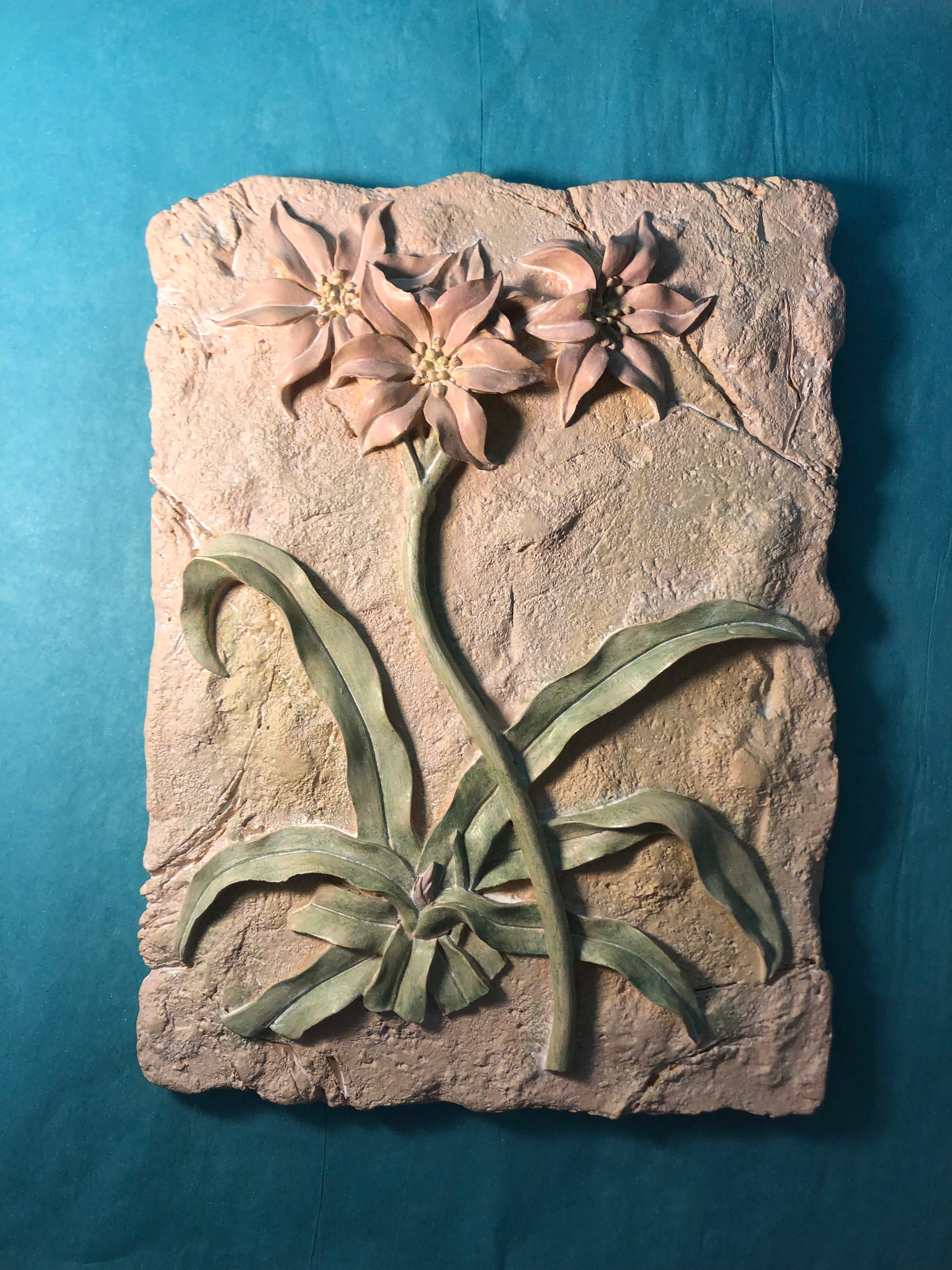 Vintage Cast Stone Floral Wall Plaque – Earth Tone Botanical Décor