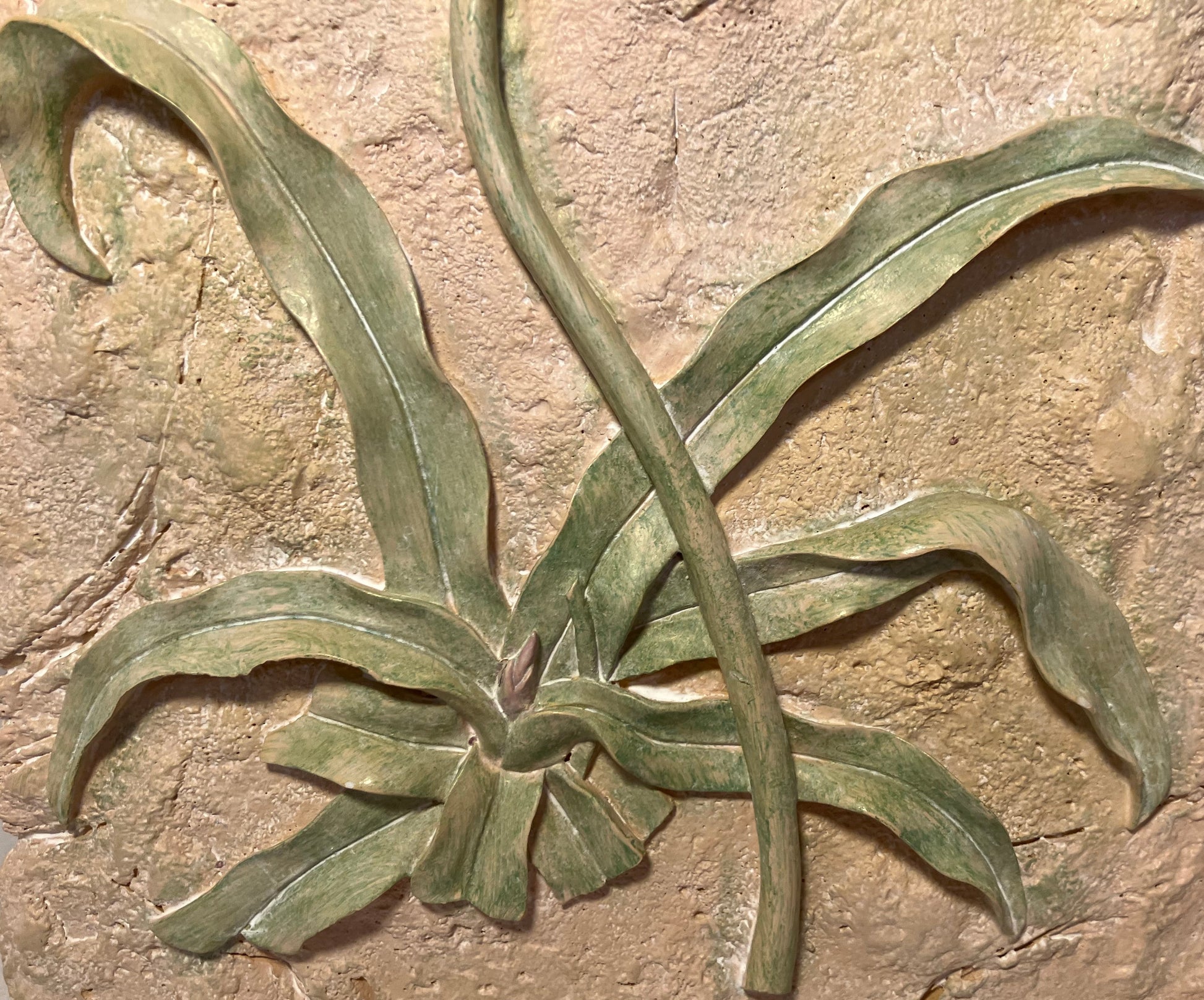Bring timeless botanical charm to your space with this vintage cast stone floral wall plaque. Featuring a graceful stem with multiple flowers and textured green leaves, this piece is finished in warm earth tones that complement cottage, farmhouse, or garden-inspired décor.