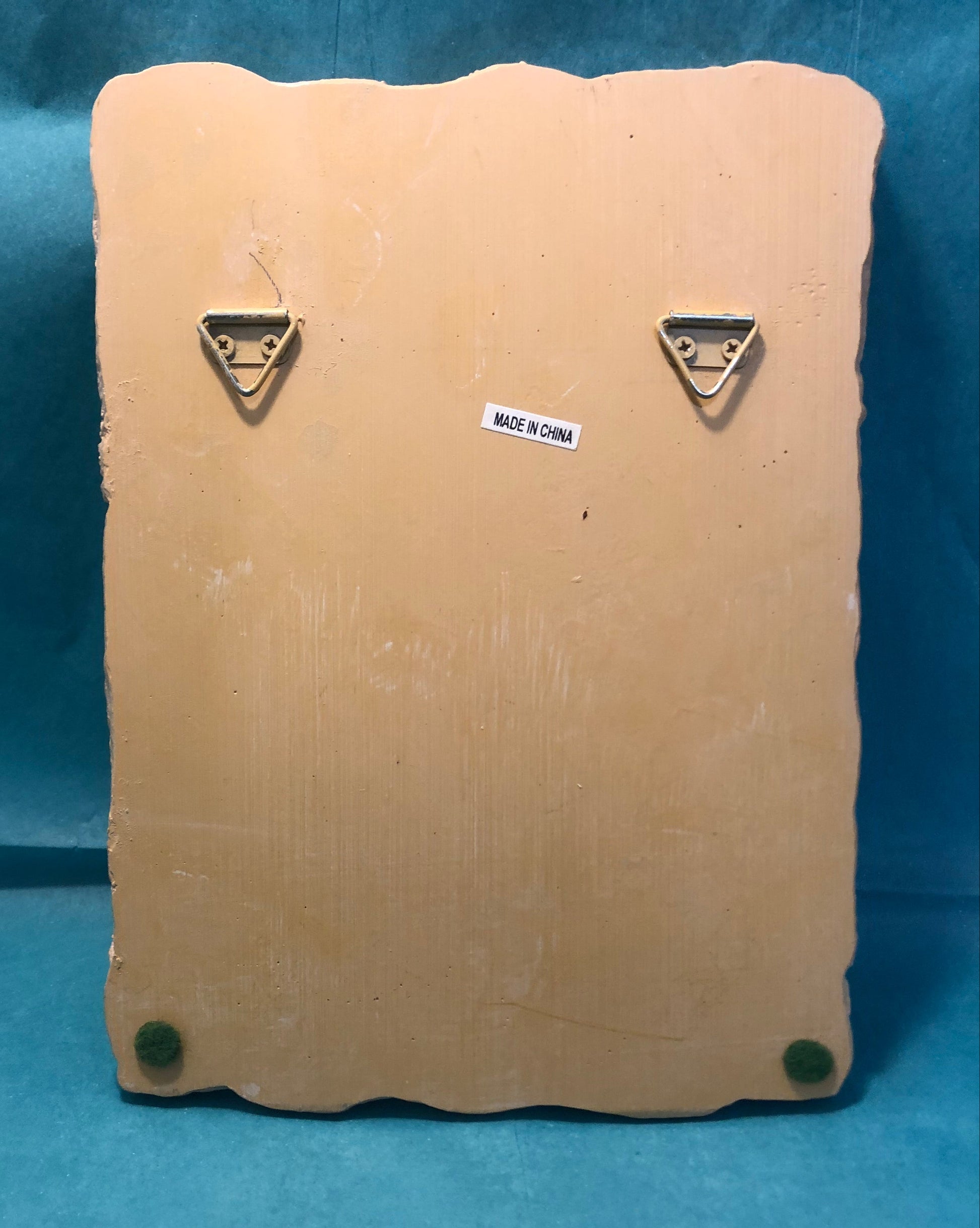 Made of cast stone, this plaque has a solid, substantial weight, giving it a quality feel and excellent durability. The back includes sturdy hanging loops, making it easy to display securely on the wall. Measuring approximately 8 x 6 inches, it’s perfectly sized to add interest to a gallery wall, entryway, sunroom, or garden nook.