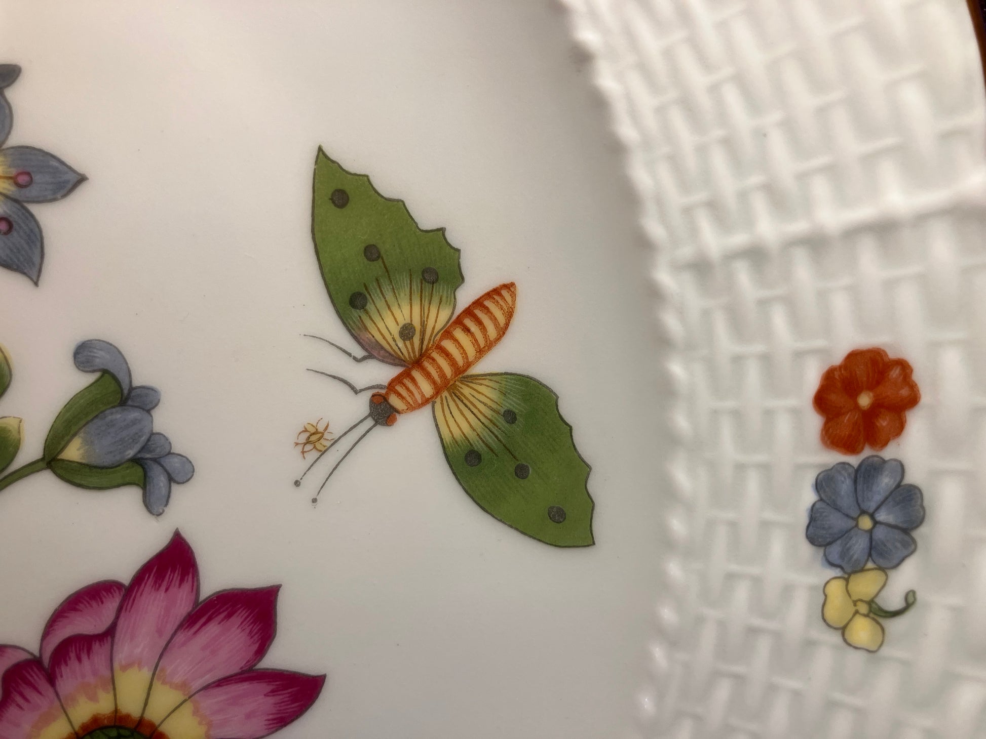 Meissen, featuring an elegant floral motif with a butterfly rendered in crisp detail and soft vintage colors.
