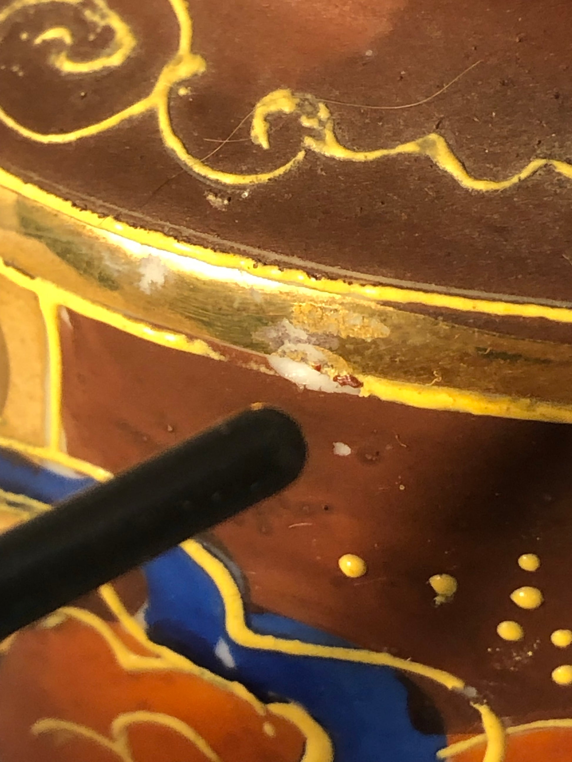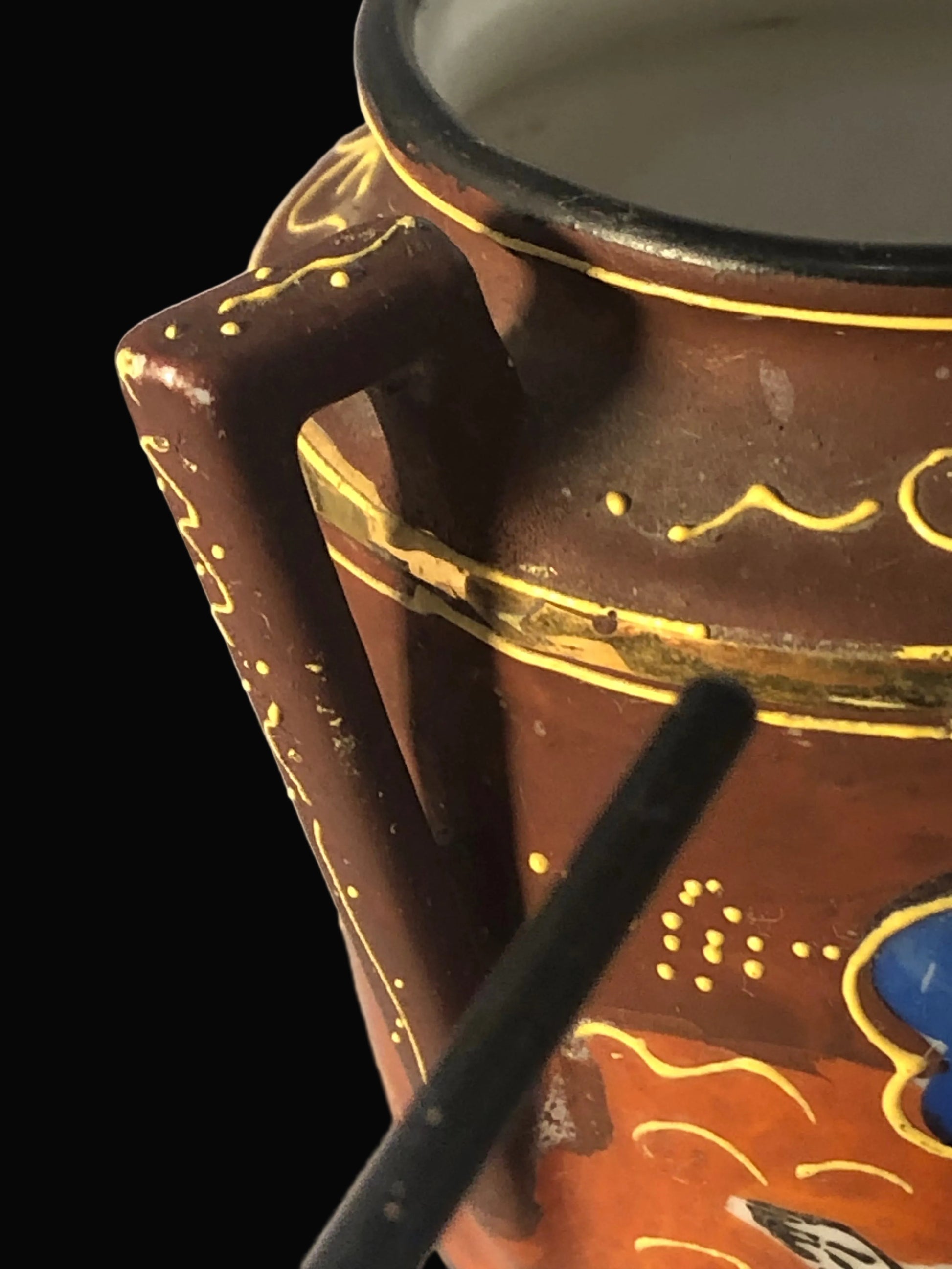 -Condition: Very good vintage condition; minor gold loss and small paint flaw under handle (see photos)