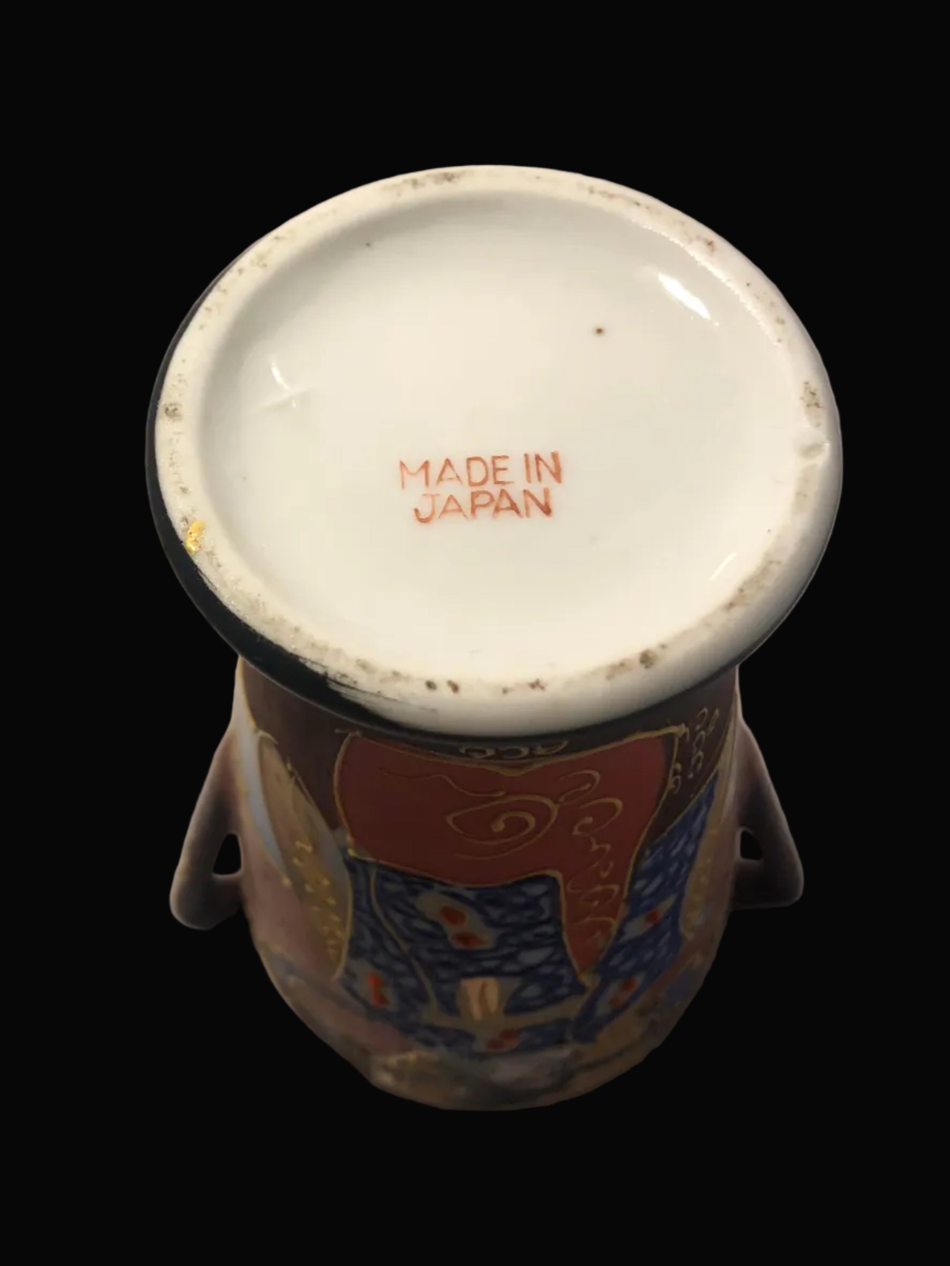 Marked “Made in Japan” in red on the base, this vase dates to the mid-century era and showcases the craftsmanship and decorative style popular in Japanese export porcelain of the period. Despite light, age-appropriate wear, it remains in very good vintage condition with only minor gold paint loss, a very small flaw, and a small missing spot of paint under one handle (please see photos). All imperfections are subtle and do not detract from its impressive display presence.