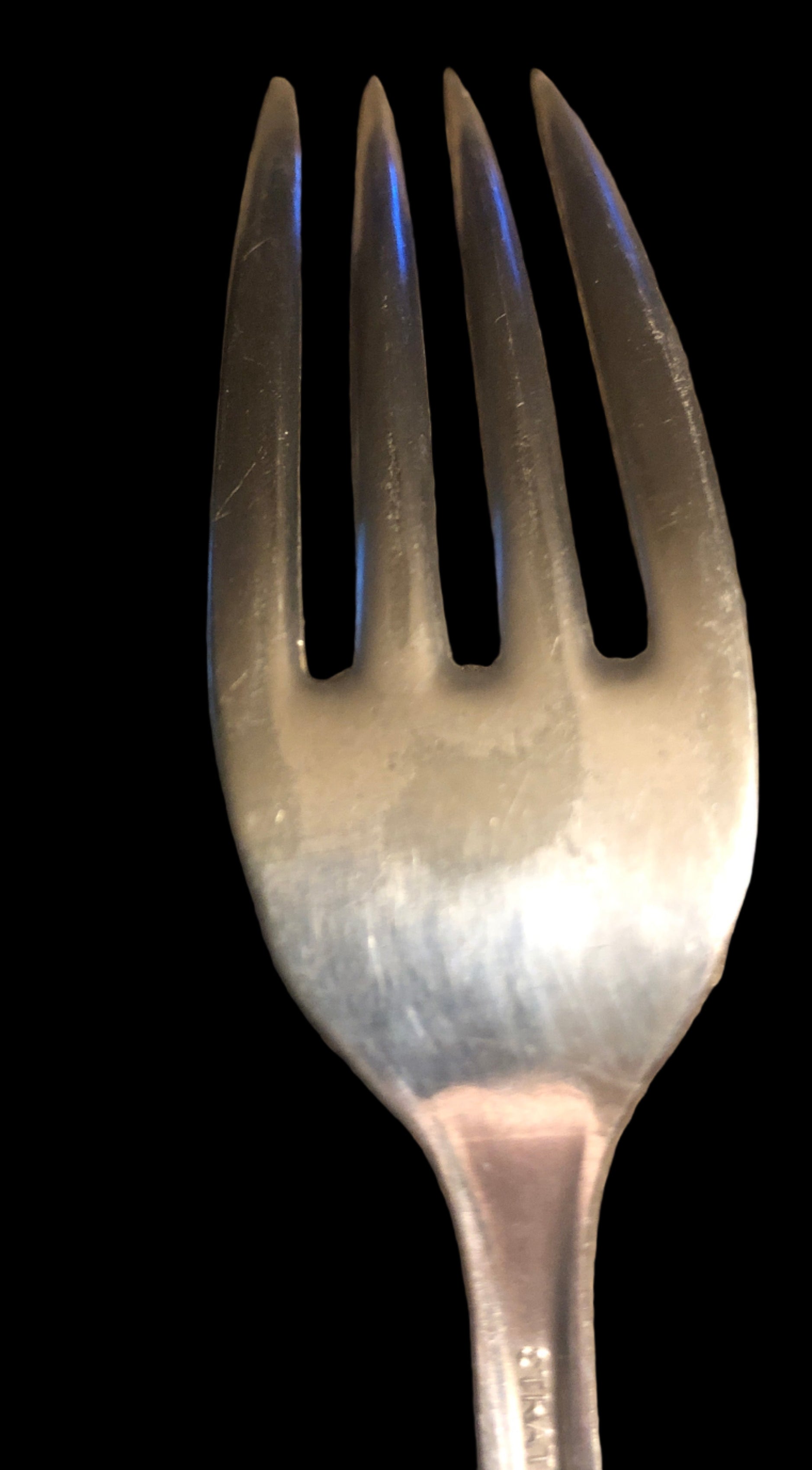 In very good condition, showing light age-appropriate wear—including minor silverplate loss on the back between the tines and handle—but still retains a beautiful shine and displays wonderfully.