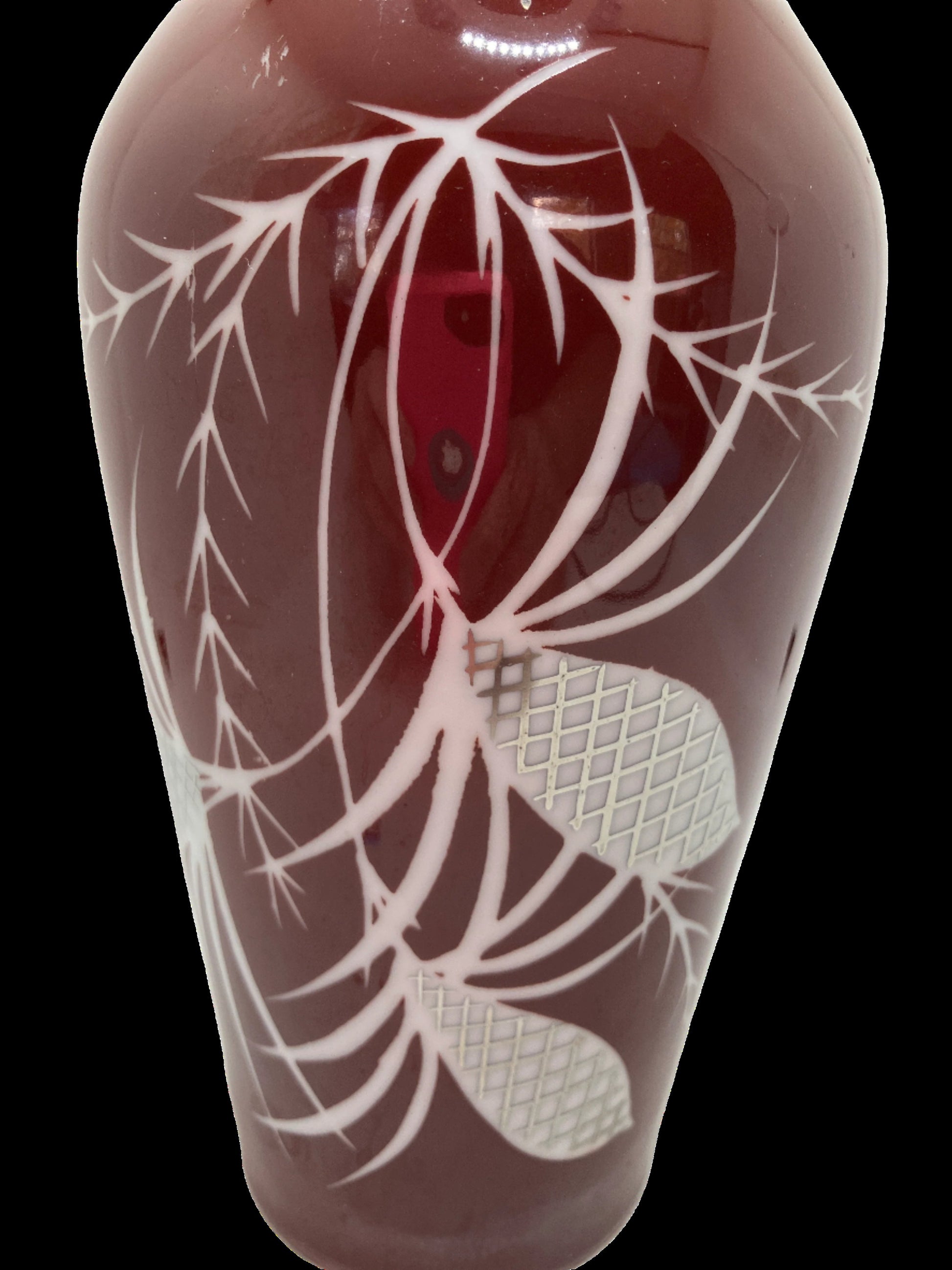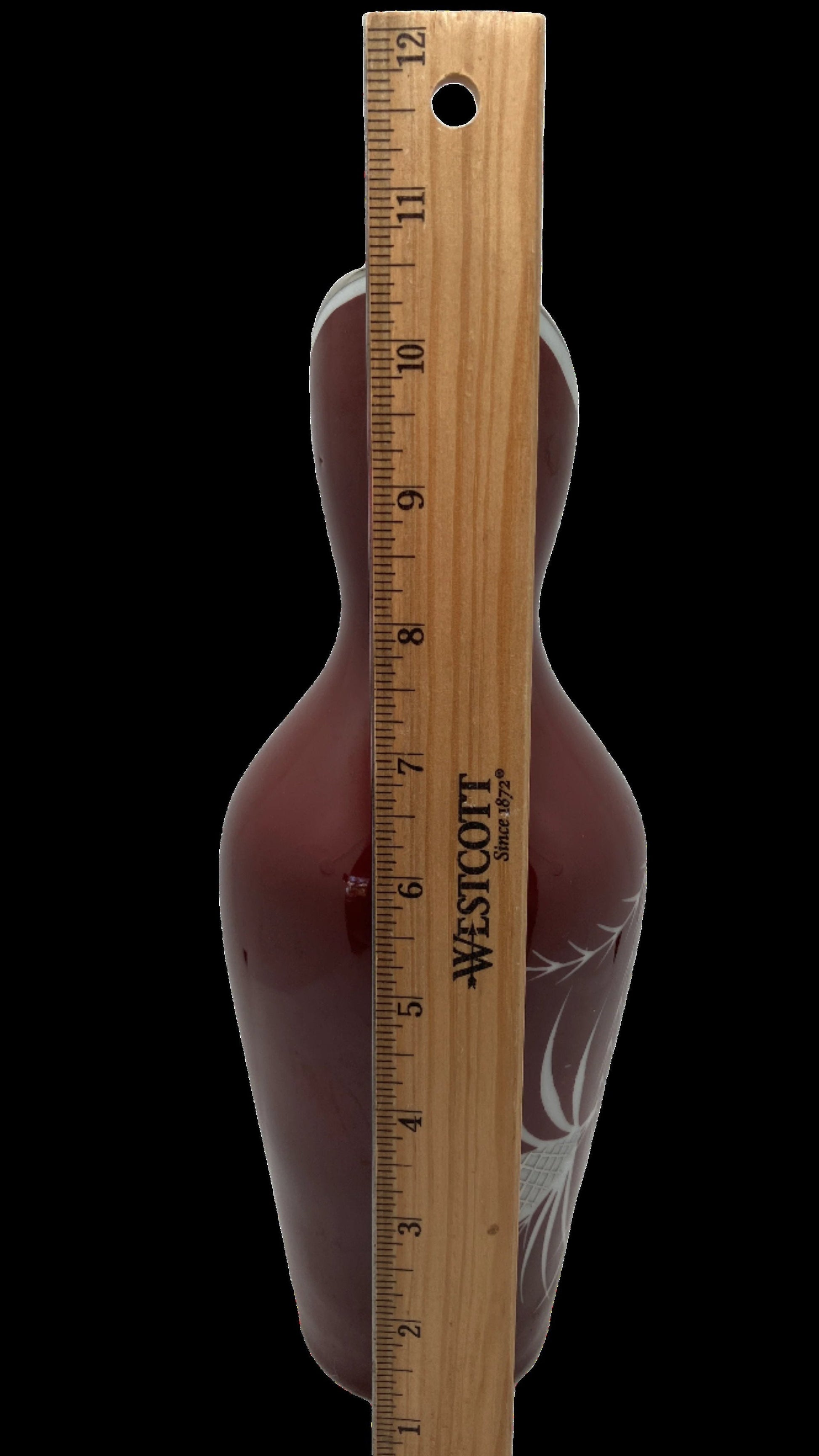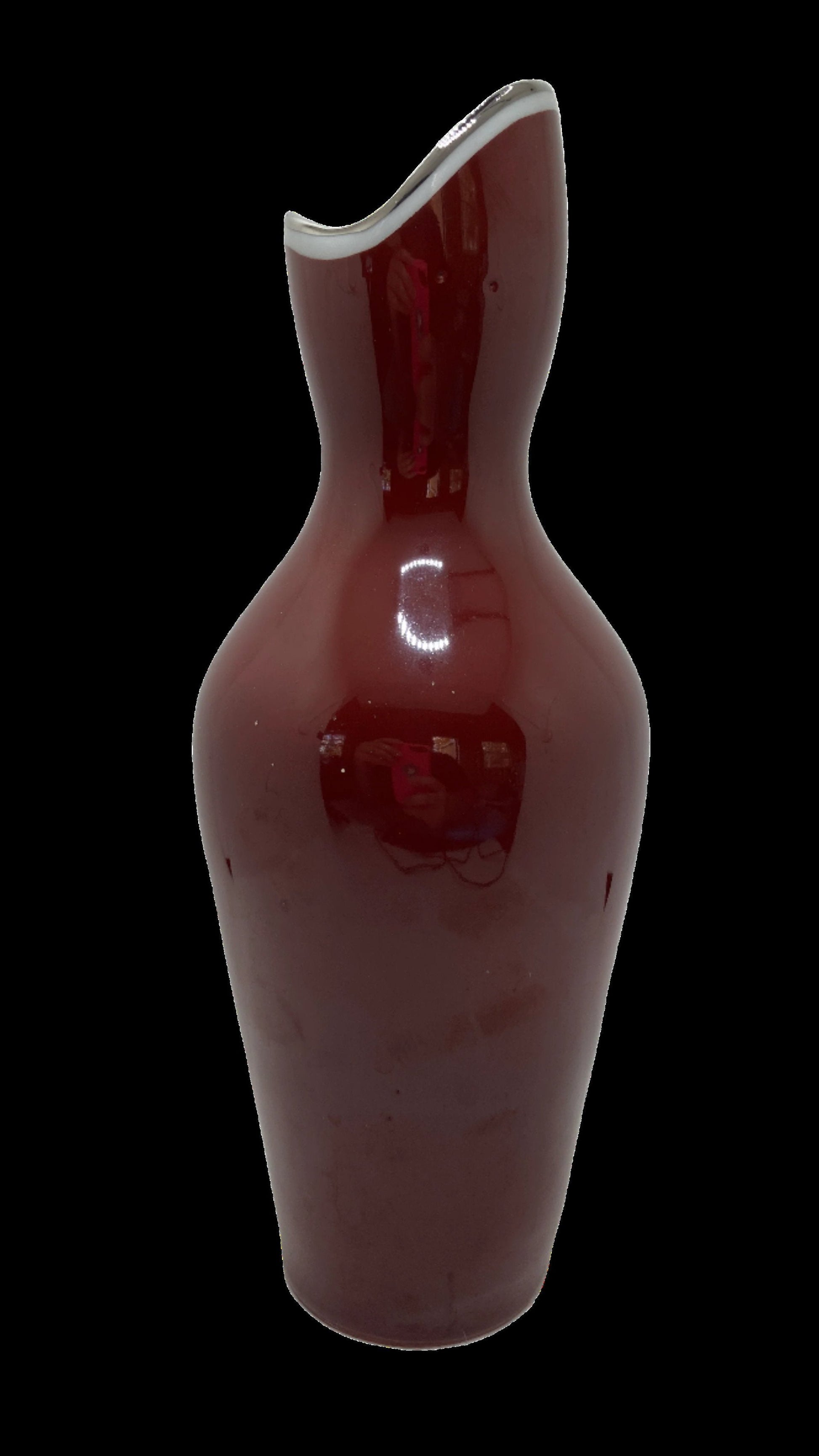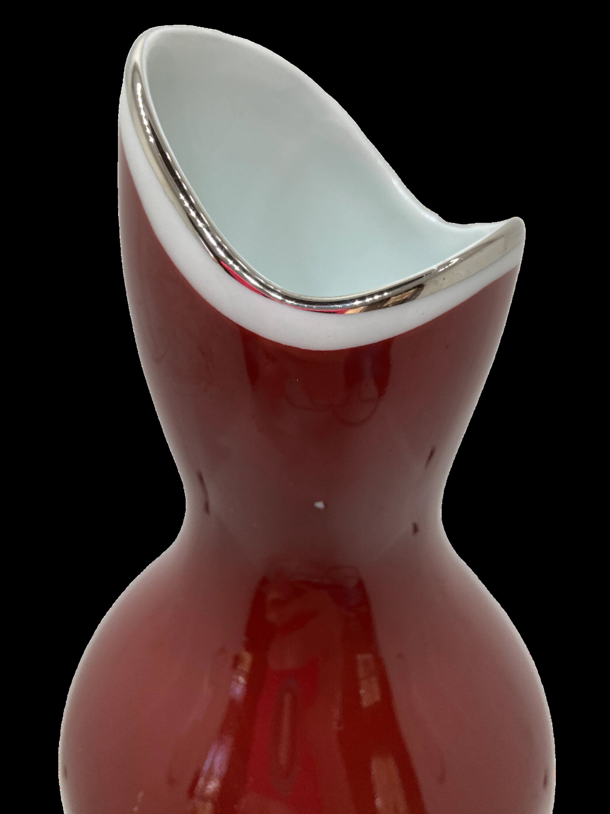 - Design: This stunning mid-century porcelain vase features a bold dark red finish with a white and silver pine cone graphic, perfect for winter or holiday decor. Its sleek lines and striking color make it an eye-catching piece.