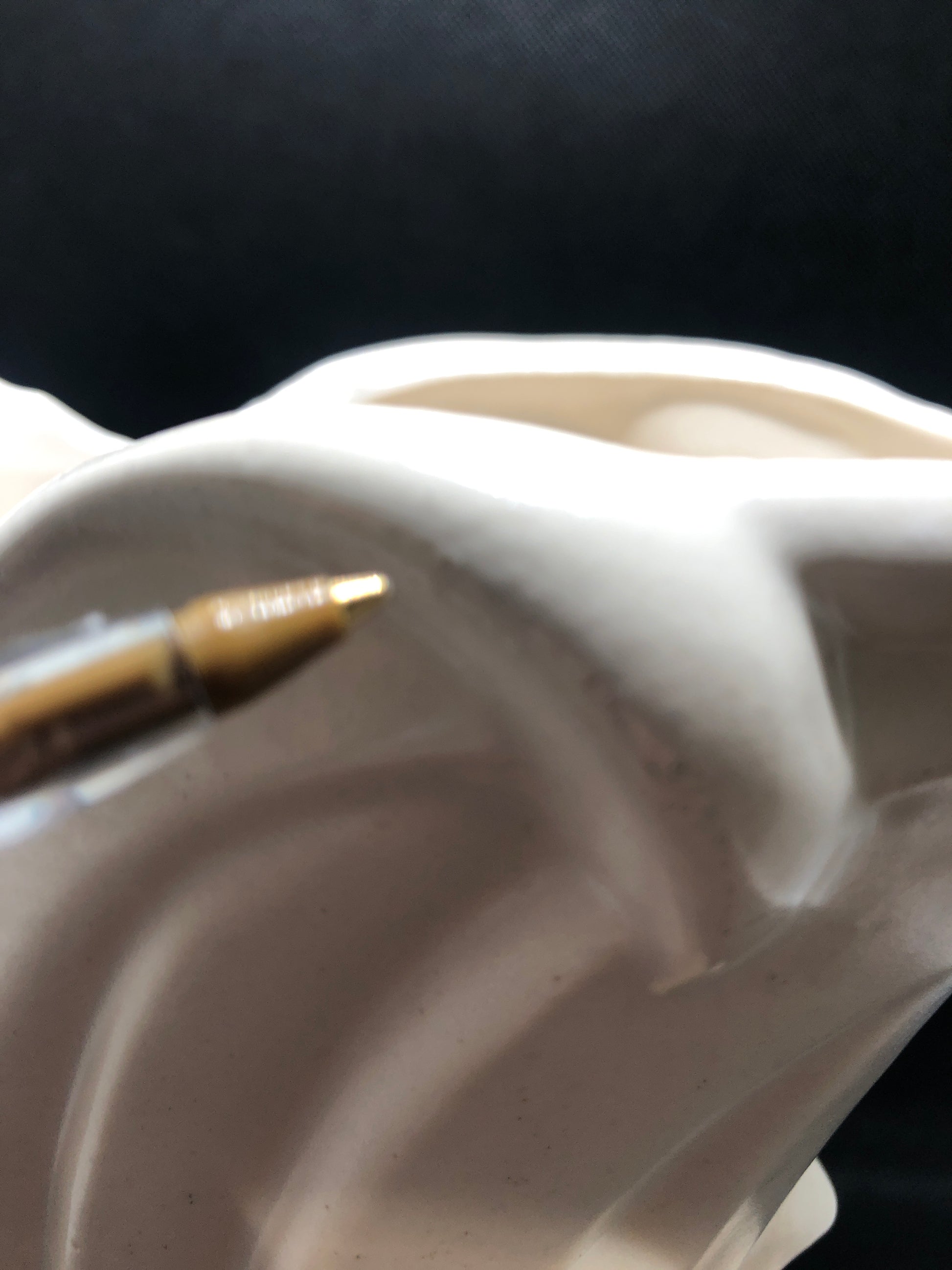 - Condition: Very good condition with a scratch on the inside (see pictures of inside and outside) and a few bumps and marks from the manufacturing process that are glaze covered