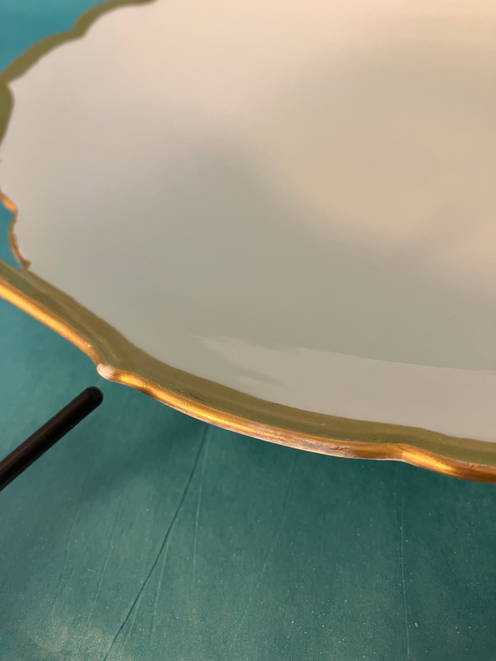The dish is in excellent antique condition, with only minor wear to the gold trim along the edges, consistent with age and gentle use. No cracks, chips, or repairs noted. Please refer to photos for close-up condition details.