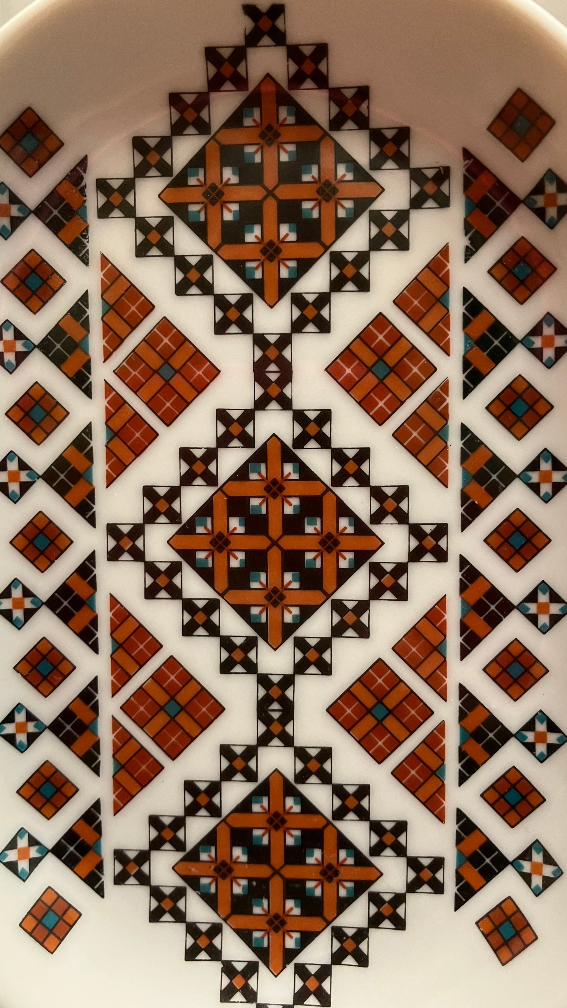Vintage Ukrainian Porcelain Trinket Dish or Ashtray Marked Art by Marusia, Cross Stitch Pattern